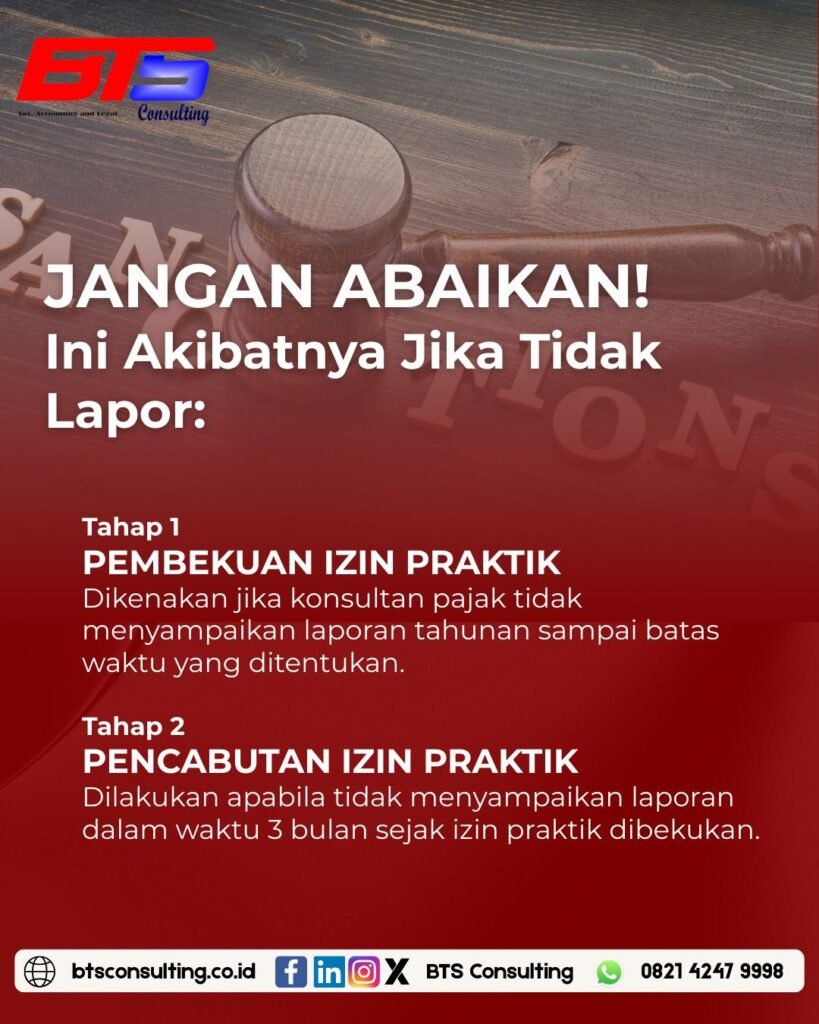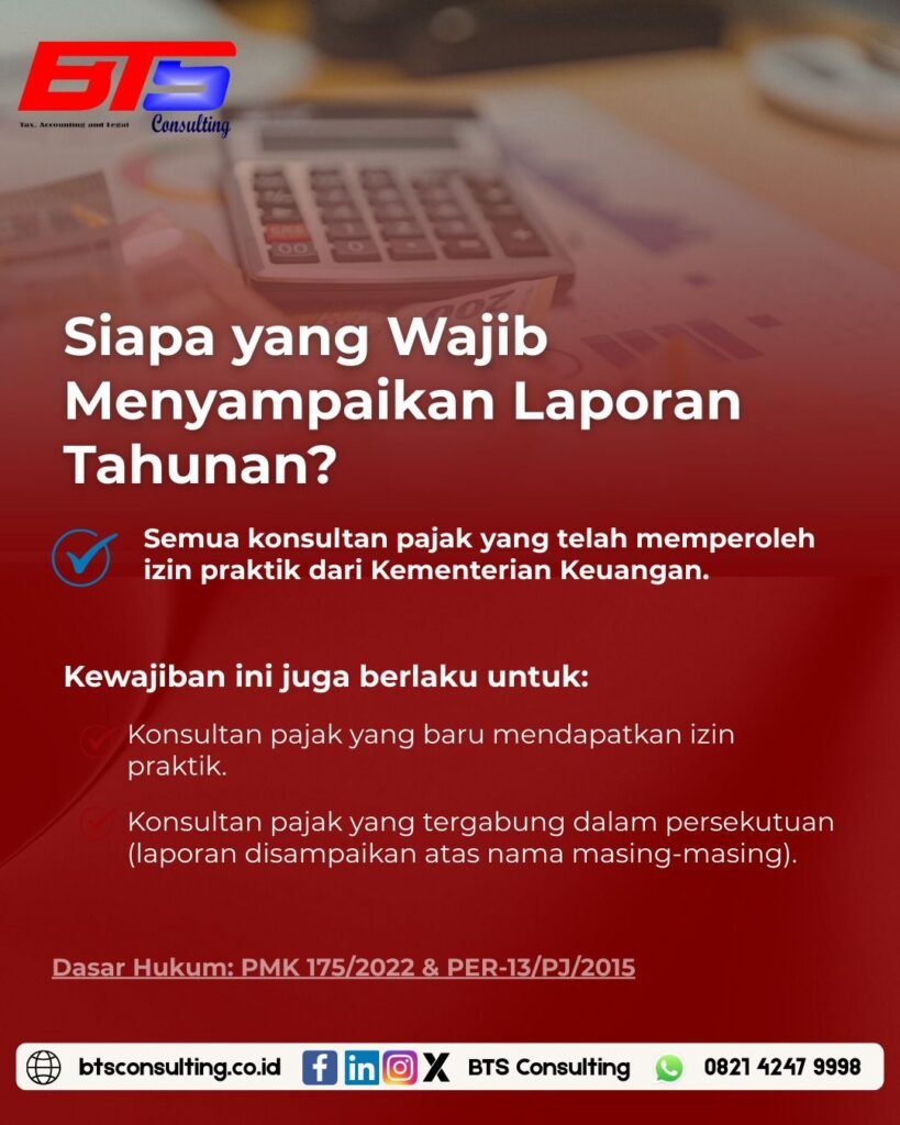 Selain izin praktik & PPL, konsultan pajak juga wajib menyampaikan laporan tahunan setiap tahun.