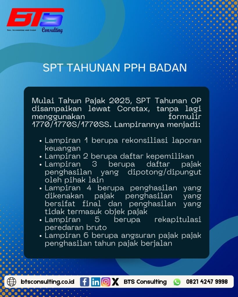 #Coretax #SPT2025 #PPhBadan #PPN #PeraturanPajak #WajibPajak #TaxUpdates #PER11PJ2025 #BTSConsulting