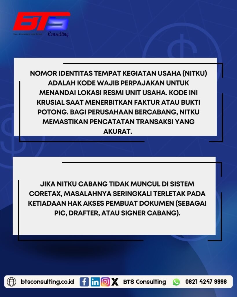 🚨 Waspada! Transaksi Cabang Bisa Terhambat! 🚨Tahukah kamu, Nomor Identitas Tempat Kegiatan Usaha (NITKU) sangat penting saat diterbitkan Faktur atau Bukti Potong ? Untuk perusahaan tertentu, NITKU memastikan pencatatan transaksi yang akurat ! 💯