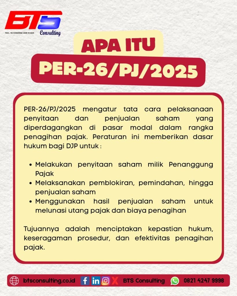 #PER26PJ2025 #PenagihanPajak #PenyitaanSaham #PenjualanSaham #PeraturanPajak #InfoRegulasi #KonsultanPajak