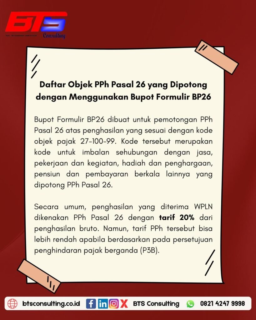 #BTSConsulting #Bupot #PPh26 #PajakIndonesia #InfoPajak #TaxUpdate
